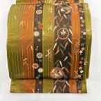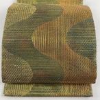 袋帯 美品 秀品 幾何学 箔 茶緑色 六通 正絹 中古 在庫一掃