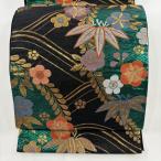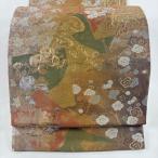 袋帯 秀品 梅 笹 金銀糸 箔 緑 六通 正絹 中古 在庫一掃