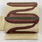名古屋帯 優品 紬地 幾何学模様 縞 ベージュ 正絹 中古 在庫一掃