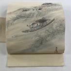 名古屋帯 優品 落款あり 舟 人物 クリーム 正絹 中古 在庫一掃