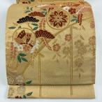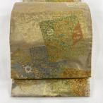 美品 袋帯 秀品 色紙 草花 金糸 箔 ベージュ 六通 正絹 中古 在庫一掃