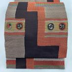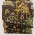 美品 袋帯 秀品 幾何学模様 箔 茶色 全通 正絹 中古 在庫一掃