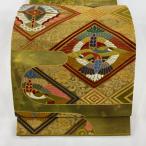 美品 袋帯 秀品 関西仕立て 霞取割付文 金糸 唐織 鶯色 六通 正絹 中古 在庫一掃