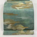 袋帯 美品 秀品 証紙あり 雲文 霞 金銀糸 灰緑 六通 正絹 中古 在庫一掃