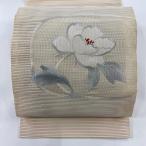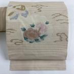袋帯 秀品 華文 草花 金糸 箔 ベージュ お太鼓柄 正絹 中古 在庫一掃