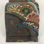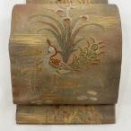 袋帯 秀品 花鳥 霞 金糸 箔 灰茶 六通 正絹 中古 在庫一掃