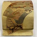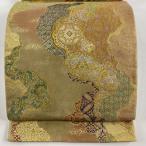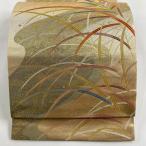 美品 袋帯 秀品 関西仕立て 草花 波 金糸 箔 ベージュ 六通 正絹 中古 在庫一掃