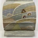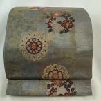 袋帯 秀品 幾何学模様 金銀糸 灰緑 お太鼓柄 正絹 中古 在庫一掃