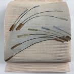 名古屋帯 秀品 夏帯 絽 草花 霞 箔 ベージュ 正絹 中古 在庫一掃