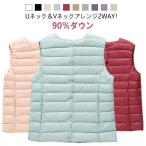90%ダウン インナーダウンベスト リアルダウン インナーベスト レディース ダウンベスト インナー クルーãƒãƒƒã‚¯ Vãƒãƒƒã‚¯ 丸首 ç§‹ 冬 薄手 軽é‡