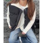 スタンドカラーフェイクダウンベスト レディース アウター ãƒã‚¤ãƒ³ãƒˆæ¶ˆåŒ–