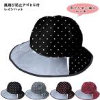 レディース レインハット つば広 ドット柄ホワイト 日本製