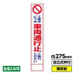 工事看板 スリム「工事中につき車両通行止」 275X1400 無反射 自立式19角枠付