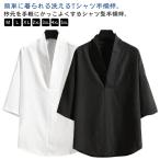 和風 衿型 Tシャツ Vネック 半袖 トップス メンズ 和装 インナー ワイド Tシャツ 着物 五分袖 着物風衿 大きいサイズ 半襦袢 Tシャツ カッ