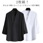 2枚セット 半襦袢 メンズ 男性 シャツ 黒 白 Vネック 洗える 半袖 襦袢 和装 肌着 着物 下着 作務衣 浴衣 インナー 和装インナー 襟付き