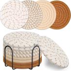 コースター 布 叿°´ 丸 茶ãŸã 厚手 æ´—ãˆã‚‹ è€ç†± 直径11cm(ブラウン系, 8枚セット)
