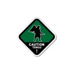 (ヘアライン)ãŠã‚‚ã—ã‚ステッカー å¤©ç‹—å‡ºæ²¡æ³¨æ„ 6.5cm グリーン 車 シール