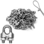 ワイヤークリップ5mm ワイヤーãƒãƒ¼ãƒ—クリップ ステンレス鋼 48個入り ケーブルクリップ ケーブル固定金具 (シルãƒãƒ¼, M5)