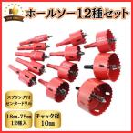 マã‚タ互æ›å“ ホールソー 12本セット Φ 穴径 18ï½ï½-75mm ãƒã‚¤ãƒ¡ã‚¿ãƒ«è£½ HSSç´ æ 薄刃è¨è¨ˆ ãƒãƒä»˜ã スプリングセンタードリル付ã(HOS1201)