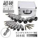 インパクトドライãƒãƒ¼å¯¾å¿œ å…角軸 超硬ホールソーセット 16本セット16〜 32mm ステンレス 木工 鉄鋼用 対応 電工 ä¿ç®¡ç”¨ 高級アタッシュケース付