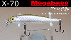 Megabass/メガバスX-70  サスペンド◆サイズ:70mm◆重さ:4.5g◆タイプ:サスペンド★トリックアクション時の泳ぎのキレをよりシャープにさせるために搭載されたX-70用重心移動構造は、トゥイッチやジャークなどのロードアクションに過敏に反応するセッティングを施しましています。クリアレイクにおけるスピニングタックルでのジャーキングではこのルアー独自のフラットボディが生み出すメリハリのある明減フラッシュは、これぞライブベイトのフラッシュ、と唸らざるを得ません。飛びを重視したミノーは多くありますが、ここまで徹底したフィッシュイーターを狂わせる泳ぎのみに絞り込んで設計されたミノーは、X-70ただひとつ、と断言してもいいでしょう。