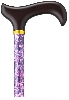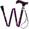 軽量アルミ 花柄ステッキ 折りたたみ式 パープル ワンタッチ伸縮型 80~90cm 64F6