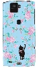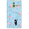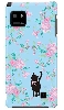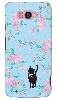 f08e ケース らくらくフォン2 F-08E docomo 花柄とブルーとピンクリボンのネコ |