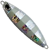 ダート&ポーズサスペンドしているかのごとく誘発する水平姿勢は絶妙なバイトチャンスを生む。この非対称はスパイラルダートのためではない!デルタフォルムによる直進安定性がキモなのだ。 アシスト専用設計のフロントウエイトジグ ※「ステイ」リア重心のジグでは不可能だったアクションにこだわり、直進安定形状デルタフォルムを採用。トリプルエッジは「スライドアクター」ゆずりの潮に乗るダート性能を実現。 あたかもサスペンドしているかのようなポーズ時の水平姿勢は、絶妙な「喰う間」をターゲットに与える。(※130g以上のモデルはセンターウェイト)