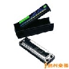 ハーモニカの巨匠リーオスカーが自ら求めるサウンドクオリティー、【特徴】リーオスカー・ハーモニカは、ハーモニカの巨匠リーオスカーが自ら求めるサウンドクオリティー、密閉率の高いすぐれた演奏性、そして耐久性を追求する中で製品化された究極のハーモニカです。リーオスカー・ハーモニカならではの4種類のチューニング(音階列)が選択可能。また別売の交換用プレート、その他の部品、そして調律・調整工具によって、誰にでも簡単にチューニング、メンテナンス、リペアができるようにシステム化されています。これにより、楽器としてのハーモニカの領域が広がりました。ゆたかな感性を表現させてくれる小さな楽器。【詳細情報】ご注意!故障かな?と思う前に、、「低音部の吸音が出ない。音がおかしい。」・・頻繁に10穴ハーモニカ初級者の方より「低音部(1,2,3穴あたり)の吸い音がおかしい」というご指摘があります。10穴ハーモニカは一般的にこの部分の音をきちんと鳴らすことが非常に難しく、当社に寄せられる最も多いお問い合わせのひとつです。特にリーオスカー・ハーモニカの場合、他社製品に比べて密閉性が高くなっています。このため音の立ち上がりが早く、ボリュームもあり、表現力を上げることができるわけですが、逆に言うと一部「出しにくい音」が存在することになってしまいます。これについては商品の不具合ではなく、息の使い方や楽器の角度調整などを工夫して練習することにより綺麗な音が出るようになります。なお、商品不良かどうかを確認する方法があります。「出音がおかしい」部分を和音で演奏(吸う)してみてください。例えばC調の場合、低音部の1番、2番、3番の穴を同時に吸って「D」「G」「B」いわゆる「Gコード」が綺麗に出ているか確認してください。この和音は綺麗に出るのに単音だとうまく音が出ない場合には、吹き方に熟練が必要で、ハーモニカを交換しても改善されることはありません。「故障かな?」と思う前に今一度ご確認ください。JANコード:4536140017128