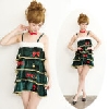 Xmasパーティーやイベントに最適な、クリスマスツリーをイメージさせる可愛いツリードレスです。グリーンカラーがベースのセクシーなミニ丈ワンピース。チョーカー付き。フリル・リボン・レースやオーナメントで飾り付けられた、クリスマスツリーみたいな可愛いドレスだよ♪ ◆詳細◆ 内容:ワンピース・チョーカー 素材:アクリル・ポリエステル、洗濯不可 JIG社、中国製 ◆サイズ◆ 女性用、対応身長155〜165cm バスト:88cmまで 着丈:64cm、チョーカー:首周り38cm モデル身長:158cm ◆着用方法◆ ワンピースは肩ヒモをかけて着用します。 肩ヒモは長さ調節が可能です。 背中側の上辺にゴムが入っています。 チョーカーはマジックテープ仕様です。クリスマスツリーに変身!エンジェルツリードレスです。ミニ丈がセクシー♪