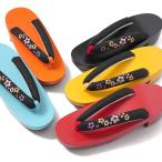 下駄 全5色 黒 黄 オレンジ ターコイズ 赤 塗り 刺繍 桜 右近下駄 レトロ ポップ モダン 桐下駄 歩きやすい