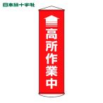 緑十字 垂れ幕(懸垂幕) ↑高所作業中(赤) 1500×450mm ターポリン (1本) 品番:124047