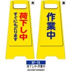 フロアスタンド 両面印刷 KF-16:表/荷下ろし中・裏/作業中 1枚 W300×H600mm 標識 樹脂スタンド看板 サインスタンド 作業中 立て看板 安全保安用品