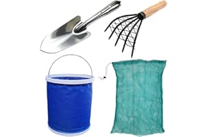 (なないろ館)潮干狩り 4点セット 熊手 スコップ バケツ ネット 貝掘り 貝拾い くまで シャベル アサリ ハマグリ マテガイ レジャー 砂遊び 園芸
