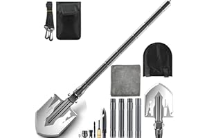 SUN-YE 折りたたみ 多機能スコップ 多機能シャベル スコップ アウトドア用スコップ 長さ・角度調整可能 組み立て式 収納パック付き ある 持ち運び便利 キャンプ/アウトドア/穴掘り/登山/雪かきスコップ/冒険/園芸/溝堀り/車/災害対策などに