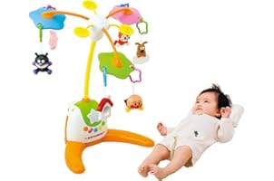 OMATA ベッドメリー ベビー用ベッドメリー・モビール 0-1歳 新生児モビールおもちゃ 回転式ガラガラメリー ベビーベッド音楽オモチャ ぶら下げベッドメリー 幼児用寝具 音量調節可能 360度回転 ライト 出産準備 出産祝い ギフト 赤ちゃん 誕