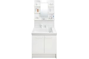 洗面化粧台 間口750mm 真っ白な清潔感と木の温かみが調和する 全収納タイプ ローカー付き 洗面ボウル 和モダンな雰囲気を持つ、リラックスしたバスルームを実現
