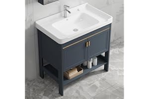 洗面台 洗面ボウル 手洗い器 陶器 ロッカー付 洗面化粧台 洗面所 収納 流し台 ガーデンシンク 浴室セラミック洗面台キャビネット組み合わせ床置き洗面台浴室キャビネット一体型洗面台ホーム水はね防止、温水・冷水栓付、排水金具 屋外 44*36*83cm