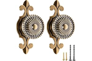 Lemfema 引き出しノブ 取っ手 アンティーク調 ツマミ ドアノブ シングルホール 亜鉛合金 食器棚 キャビネット プルハンドル DIY ブロンズ 2種類ネジ付き【全長74mm 幅30mm】2個入