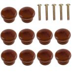 木製 取っ手 つまみ 家具 ハンドル 木製キャビネット 引き出し 丸型 金具付き DIY 10個セット ネジ付き (茶色)