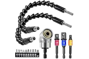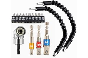 YFFSFDC フレキシブルシャフト 電動 六角ドライバードリル 接続 工具 ツール ネジ締め 穴あけ ソケットアダプター 直角工具 105度 DIY ビット 16点セット 電動 ハードウェアツールドリルアクセサリ