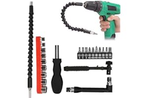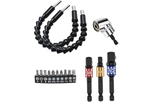 CestMall フレキシブルシャフト ドリルシャフト 電動 六角 電動ドライバー インパクト ドリル 接続 工具 ツール ネジ締め 穴あけ ソケットアダプター 直角工具 105度 DIY ビット 16点セット