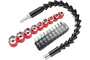 TSUCIA フレキシブルシャフト ドリル 接続 ホルダー ソケットアダプター 差込角6.35/9.5/12.7mm 105度1/4インチ 六角 ドリルビット 電動ドライバー ソケットビット(16点セット)