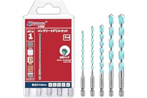EZARC 5本組 コンクリートドリルセット ドリルビット 六角軸 超硬ドリル 穴あけ ソフトタイル ストーン レンガ メタル用 3.4・4.3・5.0・6.0・6.4mm