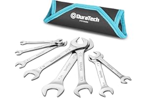 DURATECH 極薄スパナ 薄型 スパナセット 8本組 ショートタイプ 両口 ミニ レンチセット 厚さ3mm 5.5〜27mm 鏡面仕上げ済 収納袋付