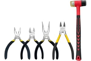 BOOSDEN プライヤーセット 5点 ペンチセット ゴムハンマー 小型ニッパー 家庭工事 水道工事 耐衝撃 滑り止め ハンドツール 工具セット