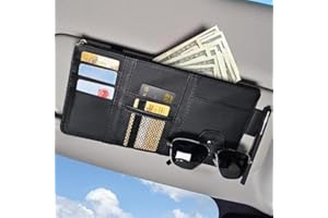 TIMYU 車 収納 サンバイザーポケット PU レザー 車用収納バッグ 多機能ポケット 収納ホルダー 取付簡単 スマホ サングラス カード ケーブル イヤホン ペン メガネ 領収証 駐車券 小物入れ ファスナーインナーポケット付(ブラック1枚)