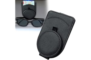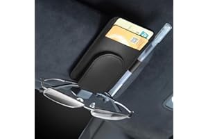 サムコス 車用収納 サングラスクリップ 車載メガネクリップ 眼鏡を守ります カード収納クリップ レザー調 取り付け簡単 (ブラック)