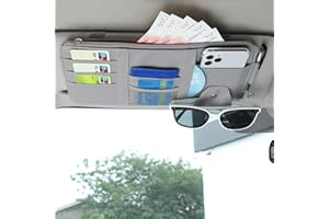 Lovesole サンバイザーポケット 車 PU レザー 車用収納バッグ 多機能ポケット 収納ホルダー 取付簡単 スマホ サングラス カード ケーブル イヤホン ペン メガネ 領収証 駐車券 小物入れ 31*15CM (グレー)