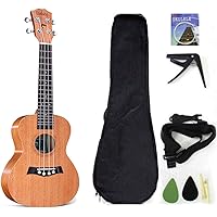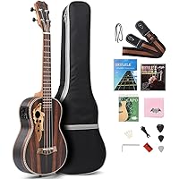MUSOO 26インチオールブラックウッドテナー電気音響ウクレレ、トラスロッド調整可能。 EQ、ギグバッグ、ストラップ…